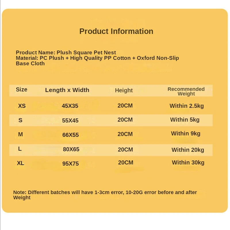 Features:Made of plush and filled with PP cotton, soft and warmComfortable touch, pets love to sleep on itPure color with cute design, it is a nice looking bedOxford cloth at the bottom, moistureproof, anti-slip